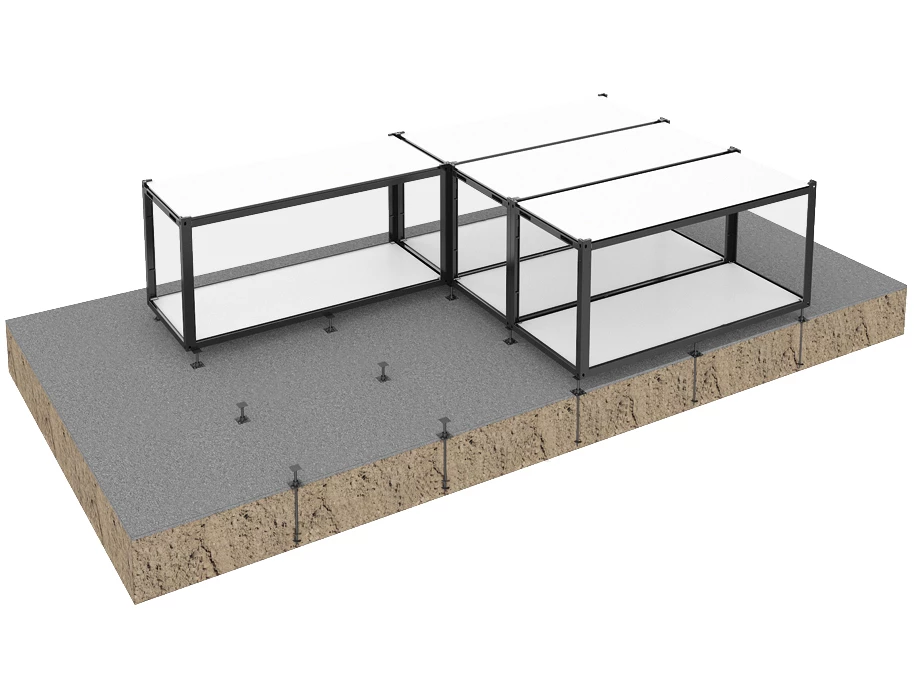 Основой конструкции служит контейнер или специальный модуль, который легко перевозить на объект. Блоки можно собирать в большие комплексы высотой до двух этажей. Капитальный фундамент при этом часто не требуется, что снижает затраты на строительство.